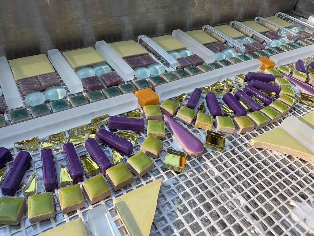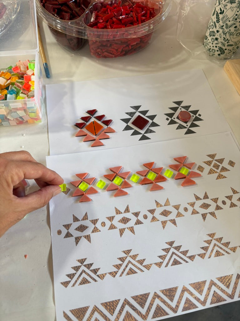 Bring your own empty bottle or jar and bling it up with beautiful mosaic tiles.